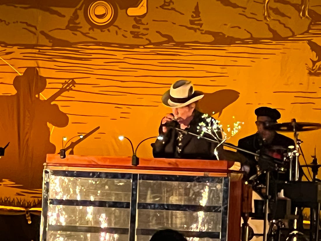 I wrote the word “jaunty” three times in my notes. Now maybe this is a sign I need to grow my vocabulary, but in all the Rough and Rowdy Ways shows I’ve attended, that is rarely a word that jumps to mind. But things were moving last night! The pace was up across the board. After years of a tempo range from “mid” to “slow-as-molasses,” it marks quite a change. Even a song like “To Ramona” had almost a carnival-esque swing.