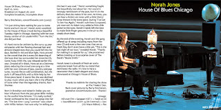 Back in 2002 (when she was relatively starting out), here is one instance of how Norah Jones endeared herself to her fans and listeners.Barry Brecheisen, concertlivewire.com (2002):“I’m just sitting here waiting for you to come home and turn me on”, Norah Jones vocalized to the House of Blues crowd during a beautiful Tuesday night in Chicago. Opening with her own bluesy version of JD Loudermilk’s “Turn Me On,” she did just that.It’s hard not to be smitten by the curvy 23 year old pianist with her flowing charcoal hair and almond shaped eyes that you could fall into for days. Bathed in red and blue light, Nora proved to the crowd that she is every bit deserving of the buzz that has surrounded her since the CD, Come Away With Me, was released earlier this year. Dressed all in black, Nora sat at a Steinway piano seducing the crowd one song at a time with her own mixture of jazz, country and pop tunes. Sounds like an odd combination, but she pulls it off beautifully with a little help by her three-piece band. It seems like she was destined to play music when you learn she is the offspring of none other than the legendary sitarist, Ravi Shankar.Born in Brooklyn and raised in Dallas you can hear influences from the jazz great Billie Holiday to the soulful Nina Simone. “I’m really excited,” Norah confessed to the crowd six songs into her set. “The last time I sung “Lonestar” was a duet with Willie Nelson. Not sure why I’m telling you this but it was cool.”There’s something fragile but beautifully real about her. Her sound is strongly reminiscent of the past, but it’s in the delivery that she makes it her own. At times, you can hear a Rickie Lee Jones with a little Sheryl Crow thrown in for extra spice. During “I’ve Got To See You Again,” Norah’s sultriness is exposed, yet reserved. As Adam Levy added a little slide guitar to the tune, Norah’s hands left the keys to make little finger gestures in the air to the steady drum beat.By the end of the evening, Norah and the gang offered up 18 songs including many from her new CD and even a few new ones that are so fresh they don’t even have a title yet. “This is the last night of our tour,” revealed Norah. “Thanks for making it so special for us,” she proclaimed before treating us to a surprise cover of The Band’s “Bessie Smith.”Back for a two-song encore, the band goes right into the Patsy Cline classic, “Crazy.” Drummer Dan Rieser brings out the brushes to help deliver a rather faithful version. Just like on her CD, Norah closed with “The Nearness of You.” “It’s not the pale moon that excites me,” Norah declared with the opening lyrics. “Sing it girl,” an over zealous female fan shouted out. Nora paused, smiled as the crowd broke into applause.Norah Jones is a breath of fresh air and a welcome break from all the nu-metal that dominates the radio. It’s nice to have a newcomer that is both elegant and classy showcased at Chicago’s House of Blues.+ + + + +