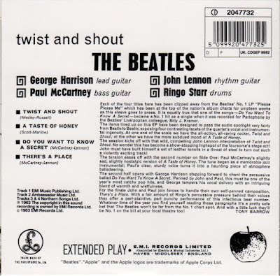 I bought this when it first came out and still have it somewhere . . . . . . . .it struck me at the time as violent in some way, seen live John spits and shouts and swears the words out! It's raw, animalistic energy made it the first Beatles single record or EP that I bought, despite it having almost cheesy additional songs the 'Taste of Honey' for the Tony Richardson Film starring Rita Tushingham and Murray Melvin, Dora Bryan and Robert Stephens film that I adored at the time for much the same reasons as Paul I imagine . . . . . . There's a Place struck the adolescent as a great introverted peon to being on one's own that I really identified with and Do You Want To Know A Secret astonished me as in the vocals retained their Liverpool accent which I missed something chronic . . . . . .TWIST & SHOUT stayed with me ever since it is John at his Rock 'n' Roll best